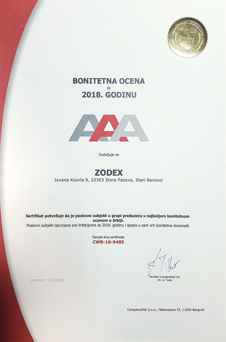 Uvek dobijemo proizvod koji zadovoljava sve naše zahteve a često i više. Ljudi iz Zodexa će predložiti i neko poboljšanje gde je to moguće.
